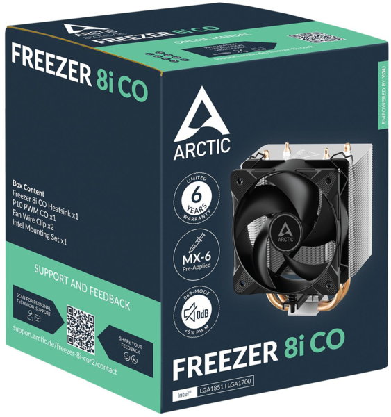 Завдяки невеликій висоті Freezer 8i CO ідеально підходить для компактних корпусів і забезпечує максимальну сумісність з високими модулями оперативної пам'яті та сусідніми компонентами.