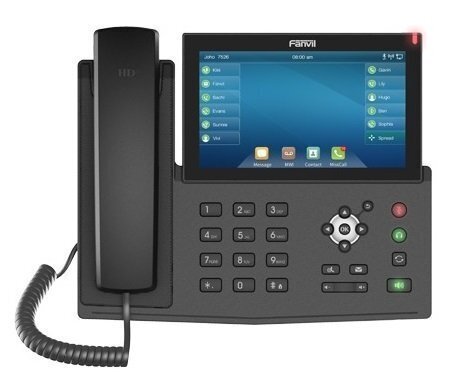 IP телефон Fanvil X7 висококласний IP телефон корпоративного рівня з 7 дюймовим сенсорним дисплеєм і 127 віртуальними DSS для індикації зайнятості абонентів і швидкого набору. IP телефон Fanvil X7 корпоративного рівня підтримує 20 SIP акаунтів, кольоровий сенсорний РК-дисплей розміром 7 дюймів (800 x 480) і до 127 віртуальних клавіш швидкого набору/клавіш BLF, які дозволяють користувачам працювати більш продуктивно і ефективно. Вбудований Bluetooth, WiFi, IP камера і підтримка кодека H.264 дозволяє здійснювати відеодзвінки і використовувати SIP відеодомофон. IP телефон Fanvil X7 є ідеальним вибором для бізнес-користувачів, які шукають високоефективний і надійний IP-телефон з підтримкою відеодзвінків і з розширеними функціональними можливостями.