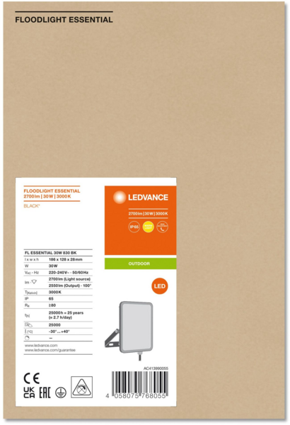- Прожектор Ledvance essential 30Вт, 2700Лм, 3000K, чорний (4058075768055)