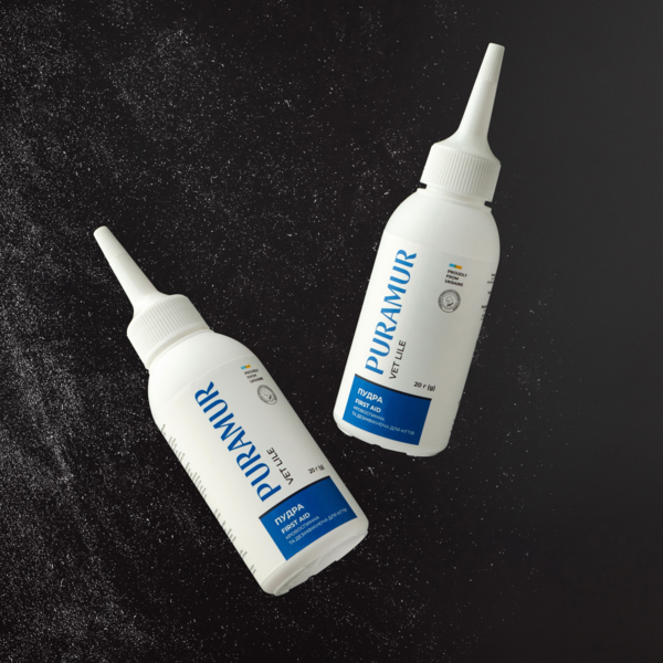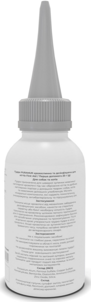 - Пудра для собак і кішок Puramur First Aid кровоспинна та дезінфікуюча для кігтів 20г
