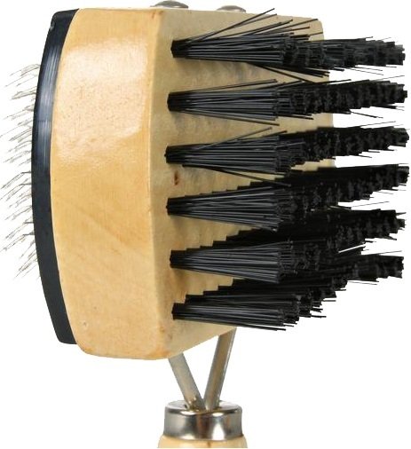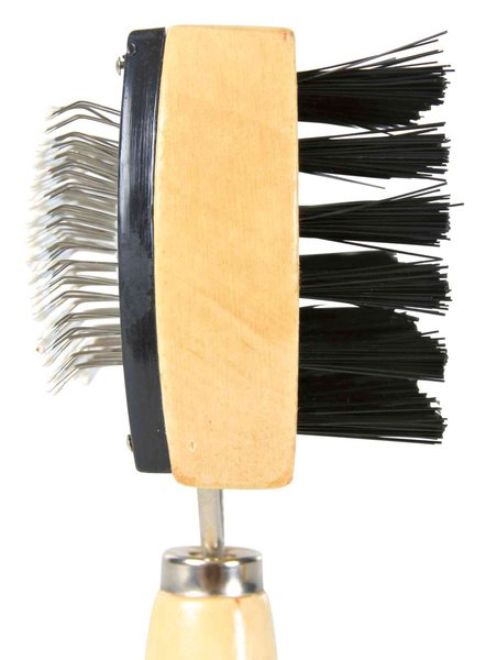 Пуходерка для собак Trixie дерев'яна ручка з кульками двостороння 10*18см