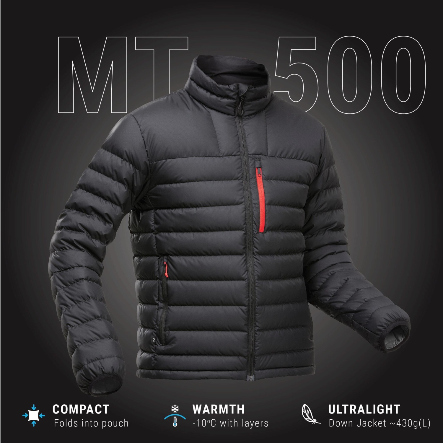 - Пуховик чоловічий Forclaz MT500 для гірського трекінгу -10°C 8317909 M чорний