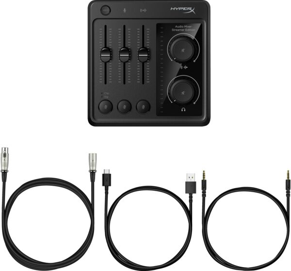 Аудіомікшер HyperX дає можливість одночасно керувати трьома джерелами звуку: мікрофоном XLR, 3,5-мм мікрофоном і стерео 3,5-мм лінійним входом. Керуйте ними за допомогою інтуїтивно зрозумілих елементів керування, які не переривають потік вашого контенту.