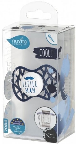 - Пустушка ортодонтична Nuvita NV7084 Air55 Cool 6m + "LITTLE MAN" темно-синя (NV7084NB)