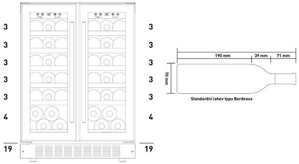 | Внутрішнє оснащення | Місткість: 38 пляшок |
