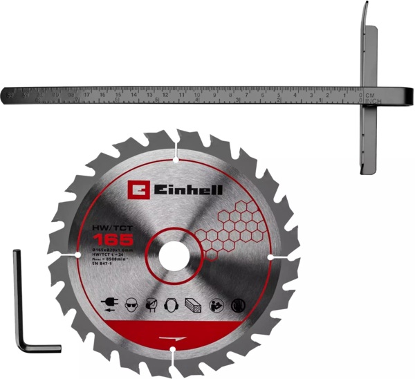 | Комплектація (можливі зміни в різних поставках) | Документація, Паралельний упор, Пила дискова, Пильне полотно, Шестигранний ключ |