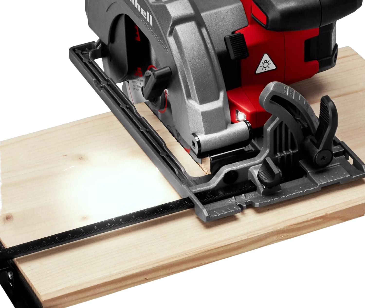 Паралельний упор забезпечує акуратні прямі різи, утримуючи пильний диск стабільно на однаковій відстані від краю заготовки.