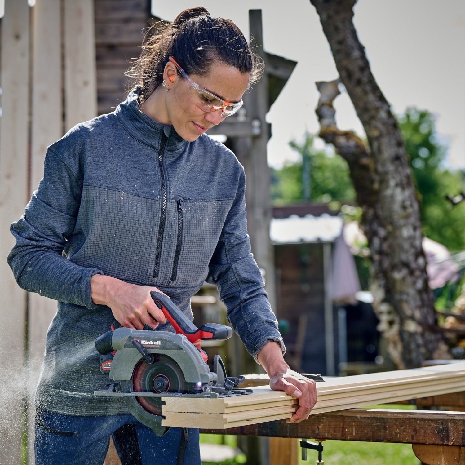 Пиляльне полотно діаметром 165 мм із 24 зубцями забезпечує швидке й точне різання всіх типів деревини — від м’яких та твердих порід до фанери чи ламінованих панелей.