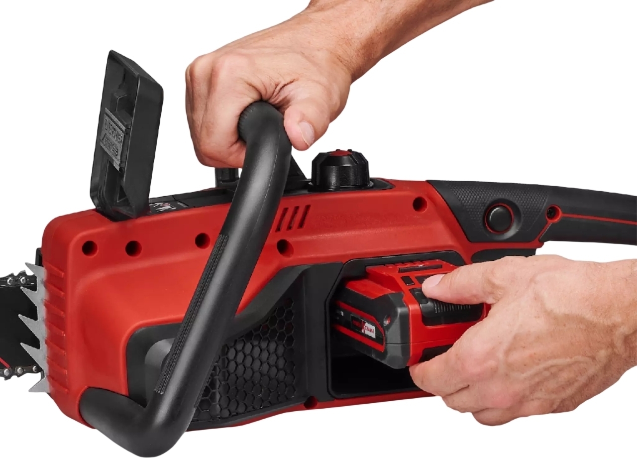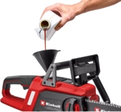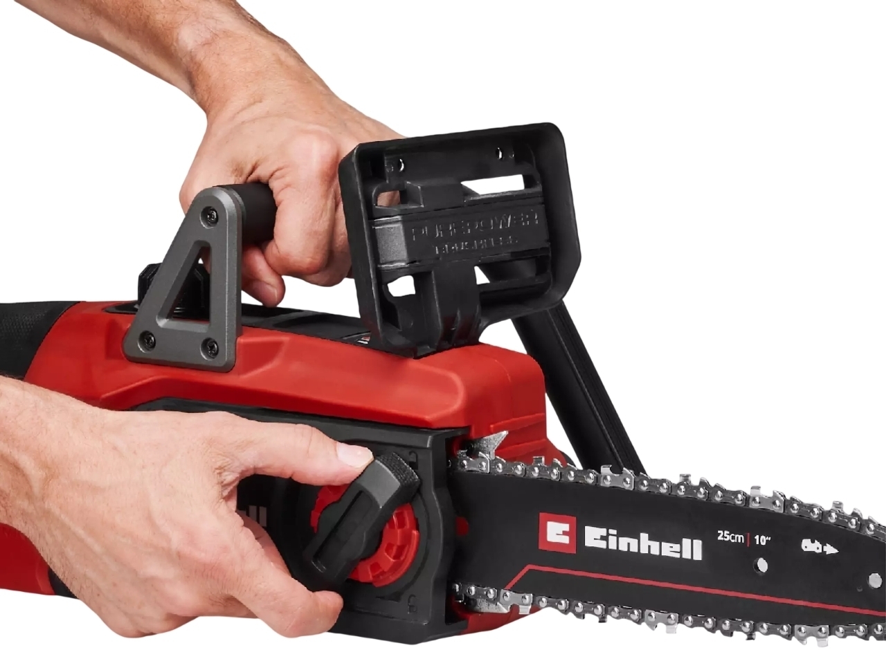 Натяг ланцюга можна легко регулювати за допомогою вбудованого поворотного перемикача. Це означає, що натяг ланцюга можна регулювати, а також замінювати шину та ланцюг без додаткових інструментів.