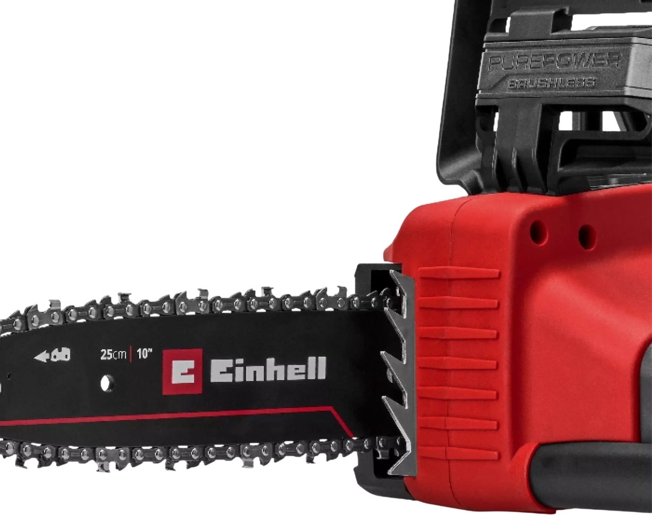 Міцний металевий обмежувач пилки гарантує безпечне ведення акумуляторної ланцюгової пилки.