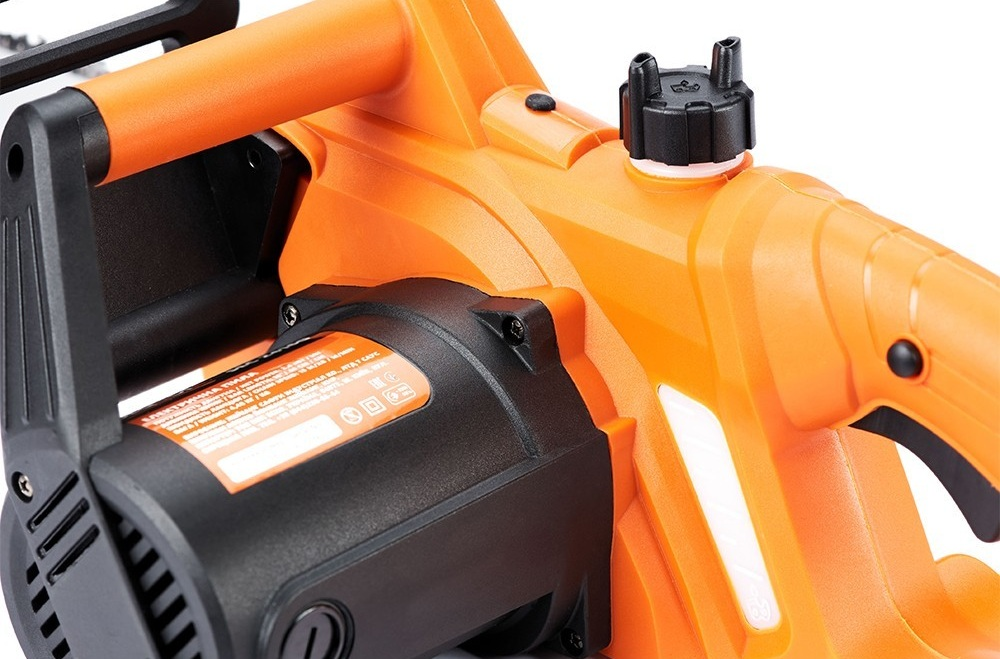 Поперечне розташування двигуна створює зручний баланс, що полегшує контроль пилки при різанні гілок, дров або демонтажі дерев’яних конструкцій. Це рішення зменшує навантаження на зап’ястя та дозволяє точно вести інструмент уздовж лінії різу.
