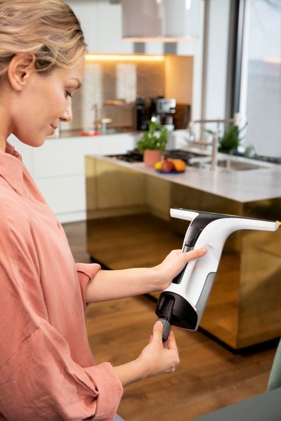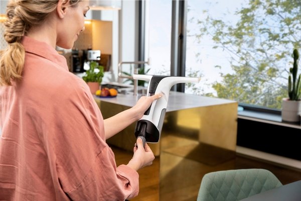 Особливостями віконного пилососа є використання змінних акумуляторів, що забезпечують тривалу безперервну роботу, наявність світлодіодного індикатора стану акумулятора та інноваційна силіконова стяжка, за допомогою якої можна очищати віконне скло до самого нижнього краю. Продумана комбінація пульверизатора для нанесення засобу для чищення, мікроволоконної насадки для його розподілу на склі та самого склоочисника, оснащеного електричним всмоктувальним пристроєм, забезпечує блискучу чистоту скла - на ньому не залишається ніяких смуг або розводів. За допомогою цього апарату можна легко очищати та будь-які інші гладкі поверхні. При цьому ергономічна конструкція акумуляторного склоочисника WV 4-4 Plus забезпечує максимальну гігієнічність: спорожнення та очищення бачка для брудної води проводяться без безпосереднього контакту з нею.