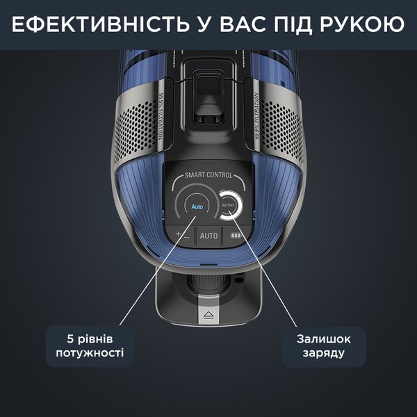 Дисплей Smart Control показує залишок заряду батареї та оповіщує про необхідність очищення фільтра, а також дозволяє регулювати потужність відповідно до ваших потреб за допомогою 4 різних рівнів та режиму Boost.