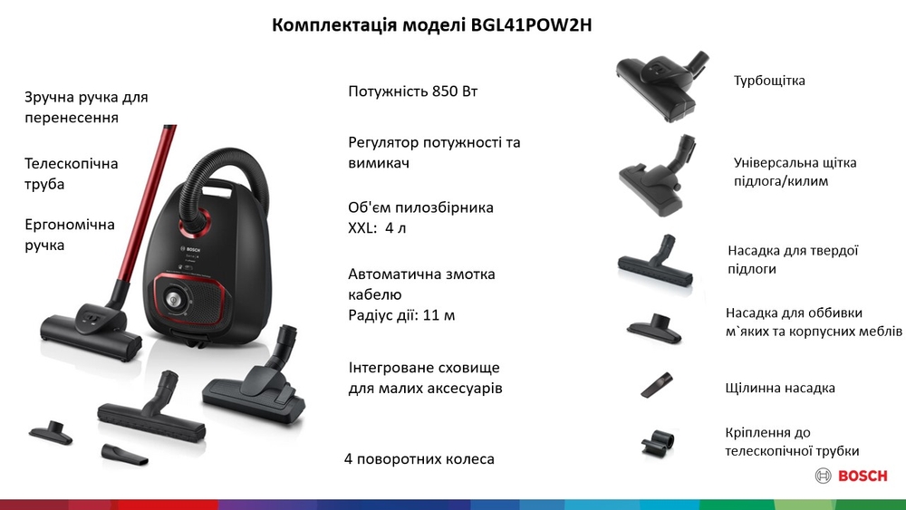 - Пилосос з мішком Bosch ProPower Series 4 BGL41POW2H