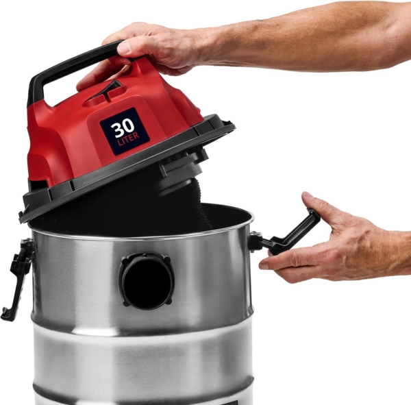 Після поглинання рідини контейнер з нержавіючої сталі, який вміщує до 30 літрів, можна легко спорожнити за допомогою пробки для зливу води. Таким чином, роботу з прибирання можна продовжувати без тривалих перерв.