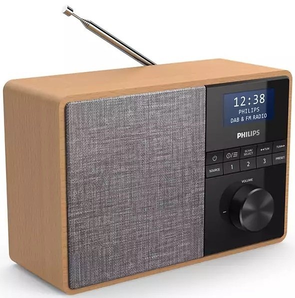 У корпус зі світлого дерева вписані чорний глянсовий дисплей і динамік, покритий сірою тканиною. На передній панелі радіо знаходиться кнопки налаштування, вибору джерела та багато іншого. Гучність налаштовується за допомогою стильного поворотного регулятора.