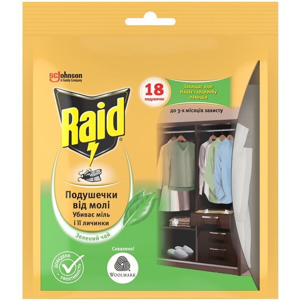 Схожі товари Подушечки від молі Raid Зелений чай 18шт