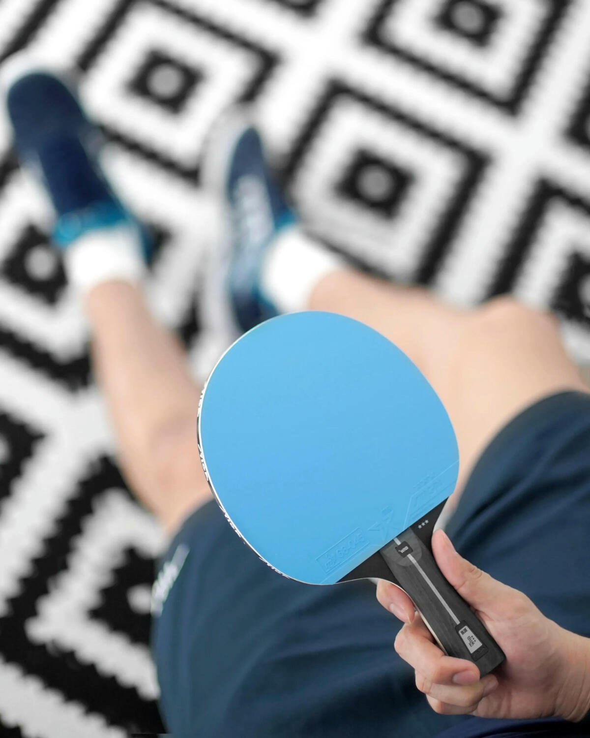Модель оснащена ефектною синьою гумою, яка не лише виглядає стильно, а й додає грі індивідуальності, дозволяючи вам вирізнятися як зовні, так і за якістю виконання ударів. Ракетку створено у співпраці з національною збірною Китаю, що гарантує високий рівень технологічних рішень та повну відповідність сучасним стандартам настільного тенісу.