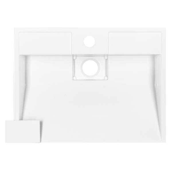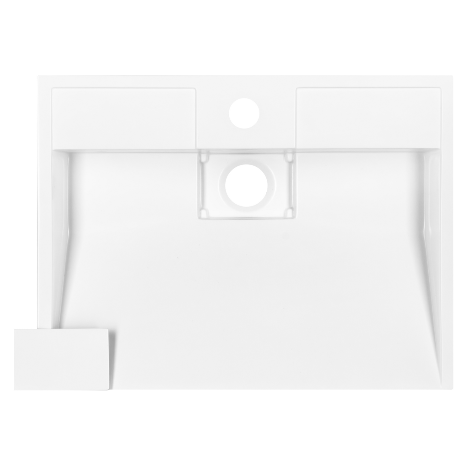 Раковину виготовлено за технологією Solid Surface (суцільна поверхня), завдяки цьому конструкція моделі вирізняється лаконічністю та надійністю. Для зручності передбачено отвір для змішувача. Поверхня виробу стійка до впливу барвників, ультрафіолетових променів і хімічних речовин.