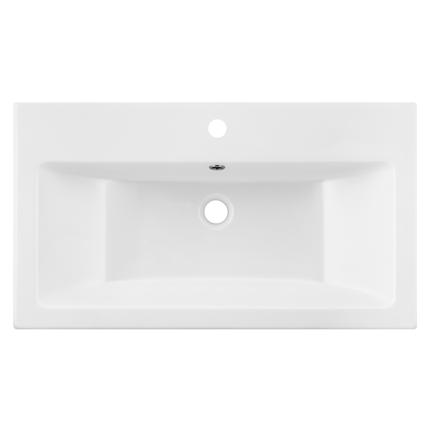 Біла раковина прямокутної форми із чіткими обрисами пасуватиме до інтер’єру в стилі хай-тек, лофт або сучасна класика.