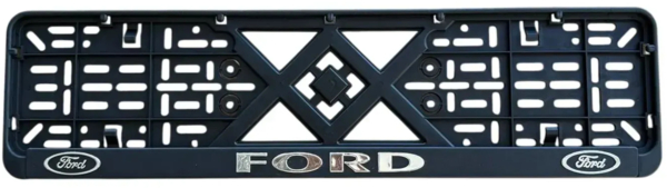 Рамка номерного знаку з логотипом автоконцерну Ford, яка доповнить зовнішній вигляд автомобіля та відповідатиме вподобанням автовласника, дозволить зручно і надійно зафіксувати на бампері або кришці багажника держномери. Рамки мають безліч конфігурацій, отворів для кріплення, підійдуть до будь-якого автомобіля.