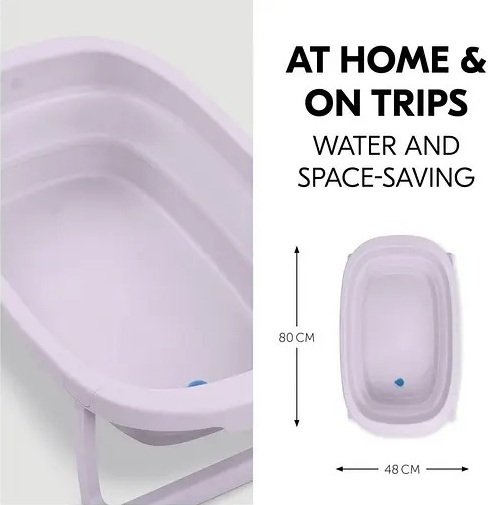 Для розкладання розкладіть обидві ніжки та натисніть на дно. Коли дитина закінчить купатися, можна швидко злити воду за допомогою пробки. Щоб скласти порожню ванну, переверніть її догори дном, натисніть на дно і складіть ніжки. В складеному вигляді 80x48x9 см дитячу ванночку можна зберігати в шафі, на полиці, або під ліжком - ідеальний варіант для невеликих квартир або подорожей.