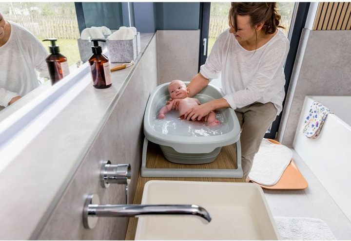 У приміщенні або на вулиці, вдома або в поїздках - ванночка Wash N Fold M стане практичним і довговічним помічником. Дитяча ванночка розміром 80x48x25 см може бути встановлена в душових і ваннах, у готелях, квартирах для відпочинку, або використовуватися в походах. Завдяки міцним матеріалам у ній може плескатися дитина вагою до 16 кг або приблизно до 4 років. Економія води для вас і безпечне, комфортне купання для вашої дитини. Ванночка вміщує до 40 л води за максимальної ваги 30 кг, що дає змогу малюкові мати достатньо місця, а вам - економити воду порівняно з використанням звичайної ванни. М'які та округлі бортики допоможуть убезпечити дитину, а відкидні ніжки забезпечать стійке положення на рівній поверхні. А щоб підтримувати комфортну температуру близько 36 градусів, у разі перегрівання води пробка стає білою, інформуючи вас про це.