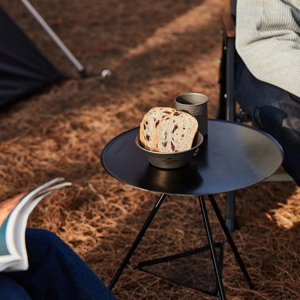 Компактний стіл Naturehike CNH22JU035 стане в пригоді для облаштування місця відпочинку під час пікніка, риболовлі, кемпінгу або пішої подорожі. Конструкція складається з двох частин: каркаса та круглої стільниці. Обидва елементи виготовлені з алюмінієвого сплаву 7001, який вирізняється міцністю та ефективно протистоїть корозії.