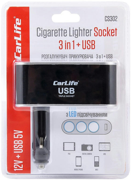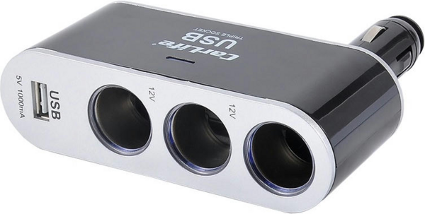 Розгалужувач прикурювача CarLife 3в1 + USB (CS302)