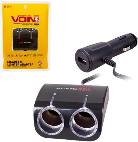 Розгалужувач прикурювача Voin 2 виходи + 1USB 1000mA 12/24В (SC-2070)