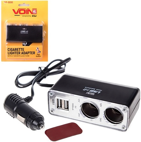 Розгалужувач прикурювача Voin 2 виходи + 2USB 1000mA (WF-0030)