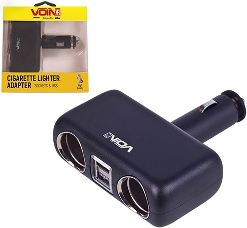 Voin SC-2004 - це подовжувач із функцією розгалужувача прикурювача. Пристрій має 2 виходи прикурювача і два USB виходи, з м'яким, світлодіодним підсвічуванням роз'ємів. Сила струму USB 2400mA в наш час дуже затребувана, оскільки більшість сучасних мобільних пристроїв дають змогу значно скоротити час заряджання вбудованої батареї завдяки можливості використання більшої сили струму заряджання. Розгалужувач прикурювача з підсвічуванням USB розрахований для експлуатації як в автомобілях з живленням бортової мережі 12V, так і для вантажівок - 24V. USB-порт стане в нагоді для підзарядки мобільних пристроїв. Розгалужувач прикурювача - це необхідний аксесуар у кожному автомобілі для живлення додаткової автоелектроніки.