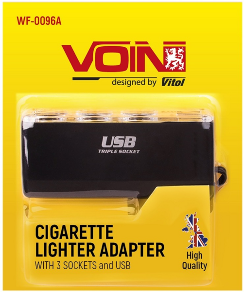 Розгалужувач прикурювача Voin 3 виходи + 1USB 600mA (WF-0096A)