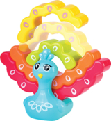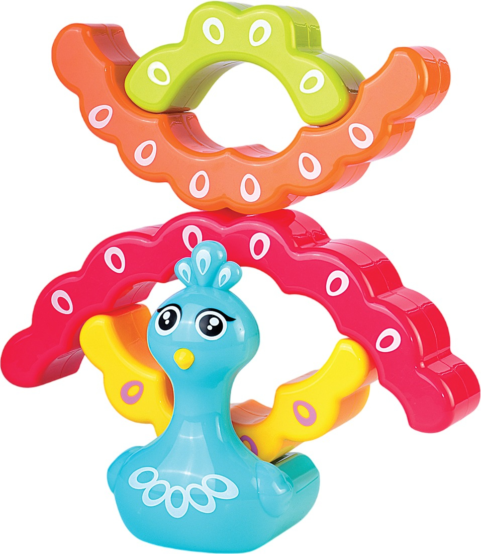 Зустрічайте одну з найулюбленіших іграшок малюків – пірамідку, але у цікавішому форматі! Райдужний павич з першого погляду привертає до себе увагу неймовірно милим дизайном і яскравими квітами. Давайте грати!