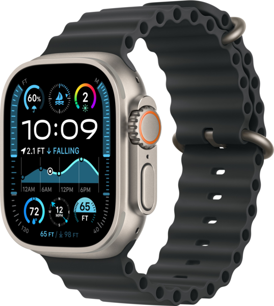 Ремінець Ocean Band виготовлений з високоефективного еластомеру з трубчастою геометрією, що дозволяє йому розтягуватися для ідеального прилягання, навіть поверх гідрокостюма. Стійка до корозії титанова застібка та регульована петля надійно фіксують ремінець під час швидкісних водних видів спорту.