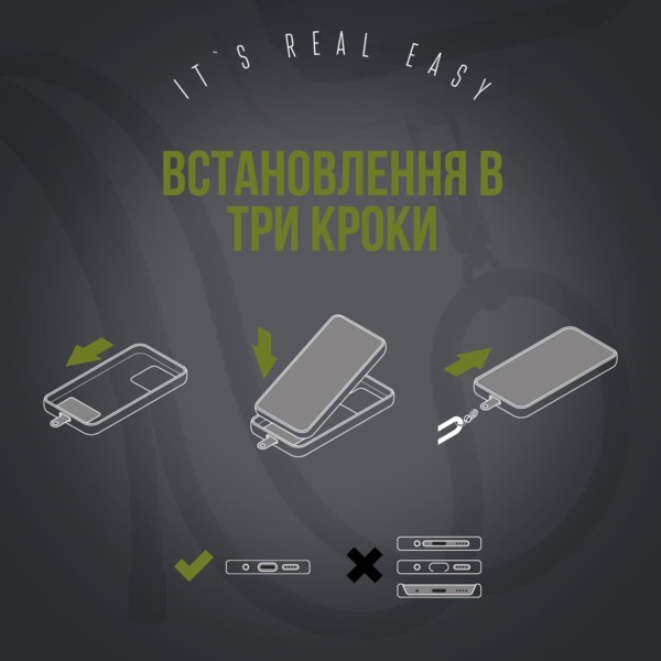 Цей ремінець для смартфона виготовлений з високоякісних матеріалів, які забезпечують міцність і довговічність аксесуара. Ваш смартфон буде добре захищений і надійно закріплений. Додатково до ремінця йде холдер, який кріпиться до ремінця. Він розміщується під смартфоном в чохлі, а кріплення виводиться з отвору під зарядний пристрій.