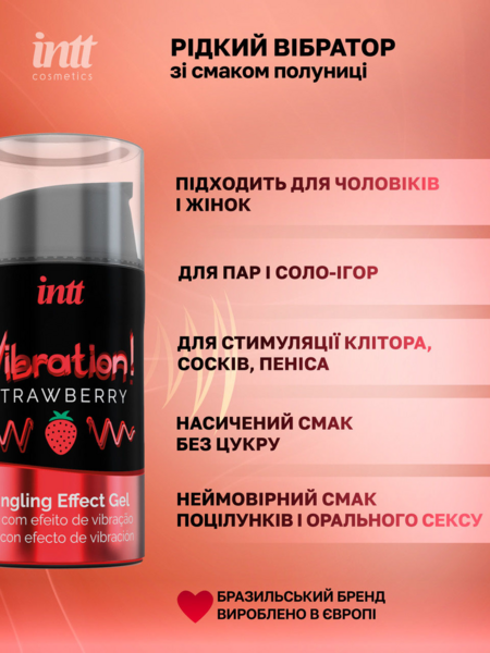 - Рідкий вібратор Intt Vibration з ароматом полуниці 15 мл