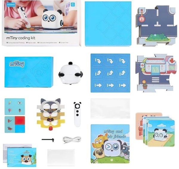 mTiny – робот дошкільної освіти для дітей, що ростуть в епоху цифрових технологій. Його унікальний контролер Pen Pen Controller, як інструмент кодування, полегшує кінестетичний досвід дітей на відчутному мовою програмування. Він використовує фізичні блоки і різні тематичні карти для створення захоплюючої симуляції.