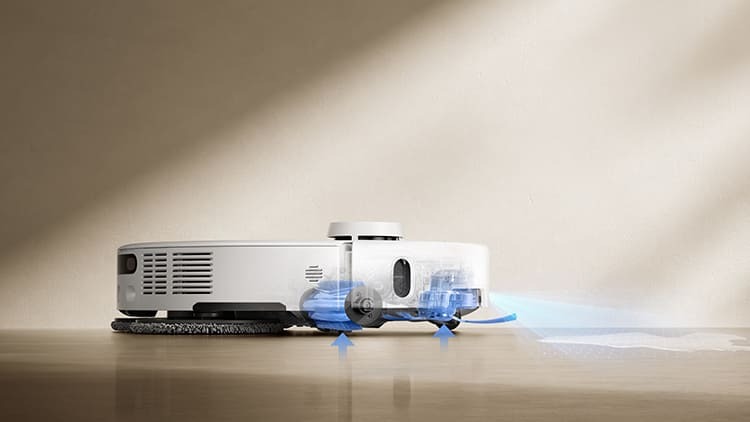 Dreame P50 досягає найскладніших ділянок, як-от кути стін і нижня частина вигнутих ніжок меблів, значно покращуючи процес прибирання. Сучасна конструкція бічної щітки із захистом від сплутування мінімізує сплутування волосся, роблячи прибирання більш якісним та ефективним.