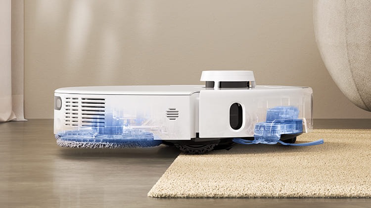 Робот-пилосос Dreame може визначати й автоматично підіймати насадки швабри на висоту до 10,5 мм, щоб ефективно пилососити килими та гарантувати, що вони залишаться сухими.