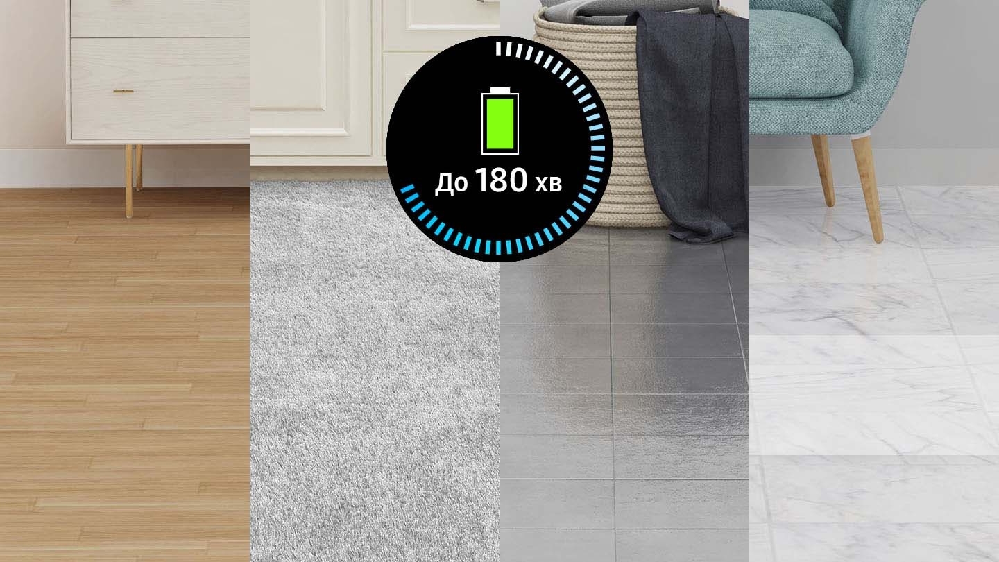Насолоджуйтеся тривалим часом прибирання без підзарядки. Довговічний акумулятор великої ємності 5200 мАг забезпечує всмоктування до 180 хвилин. Тож ви можете прибрати велику площу або навіть цілий будинок від кута до кута без жодних проблем або необхідності додаткової підзарядки, що заощадить ваш час.