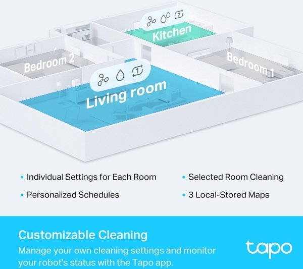 - Прибирання спеціальної зони - Позначте конкретні ділянки, які ваш робот-пилосос Tapo має очистити.