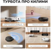 Повний процес самообслуговування протягом 100 днів дозволяє роботу-пилосос працювати не турбуючи Вас. Автоматичне доливання розчину, що чистить, автоматичне сушіння миючих насадок гарячим повітрям робить процес прибирання комфортним і повністю автономним.
