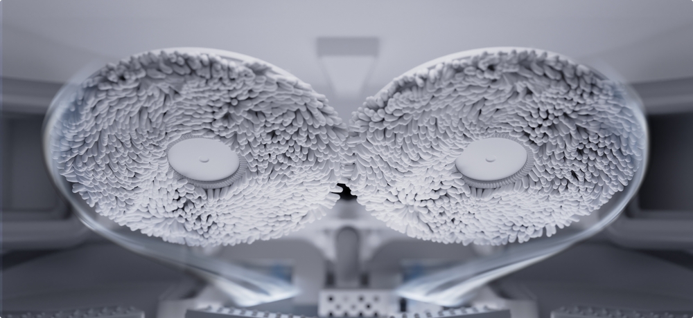 Завдяки інноваційному асиметричному дизайну у формі дуги, бокова щітка Anti-Tangle ефективно використовує відцентрову силу. Ця унікальна особливість дозволяє їй плавно направляти волосся до кінчиків щетини для легкого очищення.