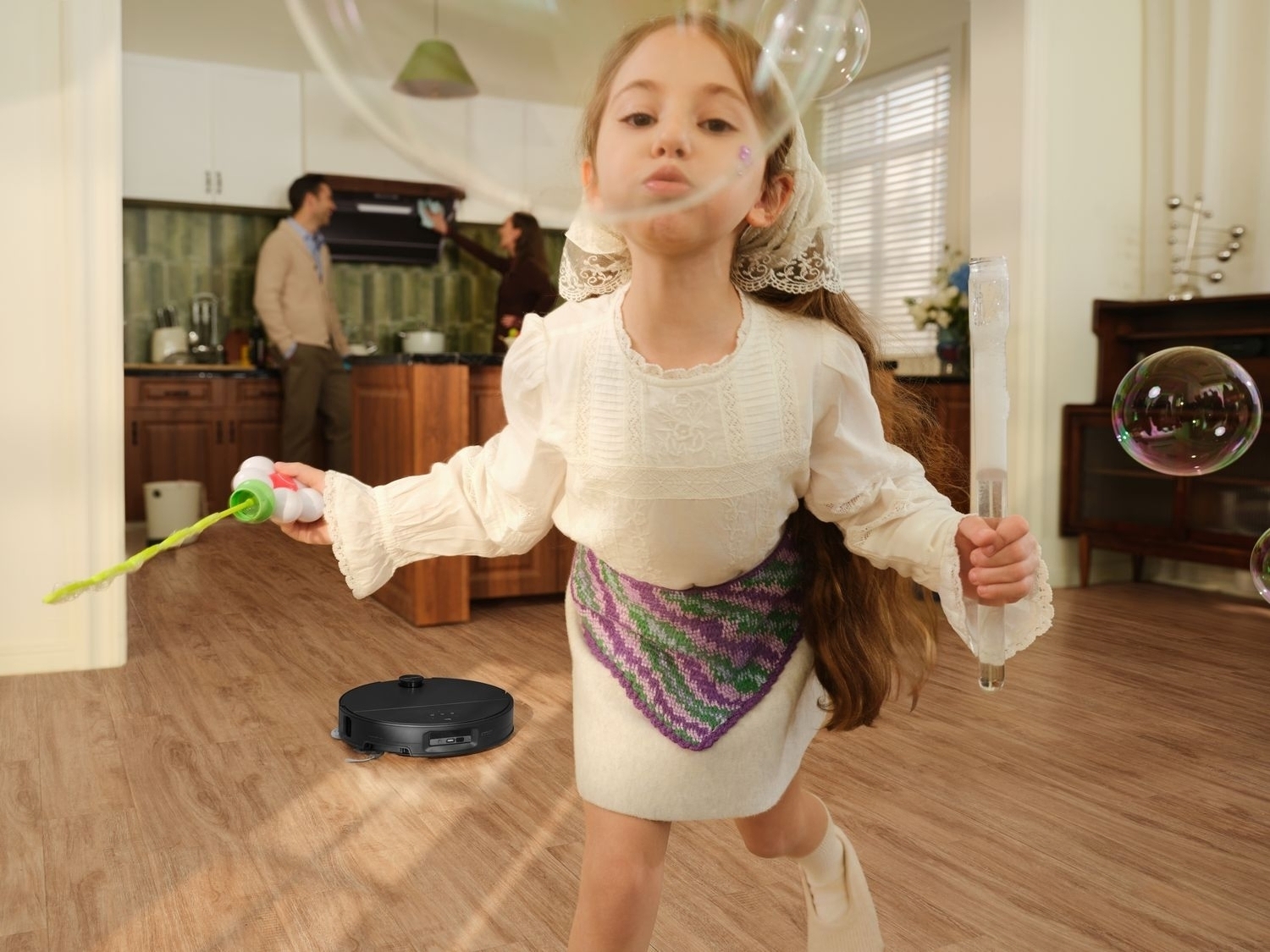 У режимі AI Laboratory через додаток Roborock Saros 10 виявляє вологі плями, піднімає універсальне колесо та збільшує тиск для більш глибокого очищення.