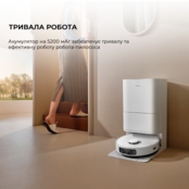 Робот оснащений батареєю на 5200 мАг і працює до 240 хвилин без підзарядки. Повністю прибрати двокімнатну квартиру? Виконано. І навіть тепер у Dreame є сили для ще одного сеансу. Якщо помічник розрядиться, то швидко відновить заряд на базі та очистить зону, що залишилася.