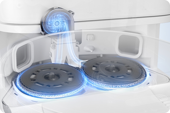 Dreame зберігає насадки в чистоті, промиваючи їх протягом сеансу. А коли прибирання завершено і насадки промиті в останній раз — вмикається автоматична сушка. Прохолодне повітря видаляє залишки вологи, щоб захистити мікрофібру від цвілі та сторонніх запахів.