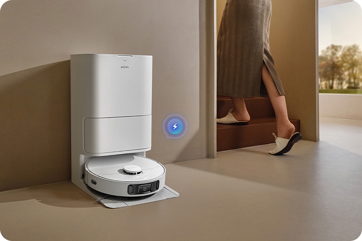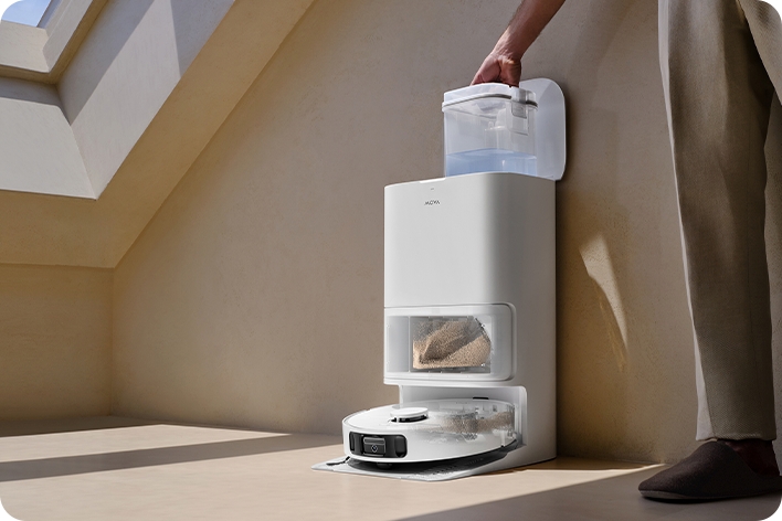 Витрушувати контейнер з пилом — не надто приємна справа, навіть коли це стосується догляду за роботом. Тому за вас це зробить Mova E30 Ultra — а точніше, система DualBoost 2.0. Коли сеанс завершено, робот повертається на базу, де сильний потік повітря видуває зібране сміття в окремий мішок на станції (на 3,2 л). Згадуйте про рутину раз на 2,5 місяці — і просто замініть мішок на новий.