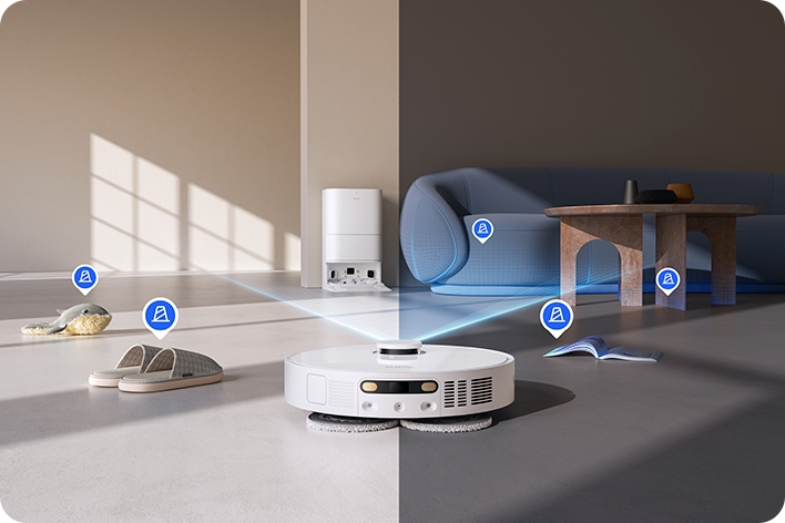 Система 3DApt — це адаптивність і безпечний рух. Завдяки їй робот може розрізняти перешкоди та уникати зіткнень. Якщо ви залишили тапочки біля ліжка або на килимі розкидані дитячі іграшки — Mova E30 Ultra просто об'їде їх, очистивши доступну площу.