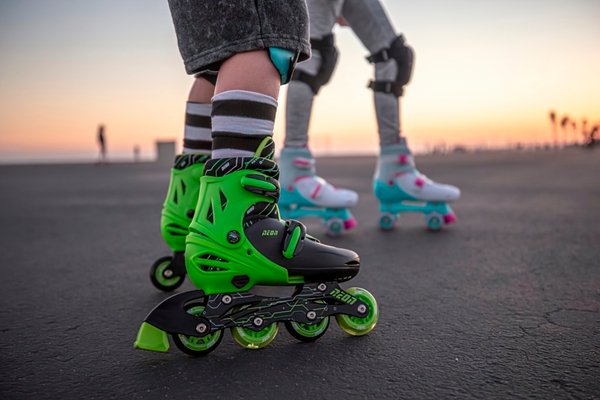 Це набір включає відразу два типу роликових ковзанів Inline та Quad. Саме завдяки такій варіативності набір Neon Combo Skates буде зручним та корисним для дитини, якій тільки належить освоїти цей спорт. Навчання буде проходити найбільш продуктивно і дозволить безпечно освоїти ролики використовуючи переваги кожного з типів.